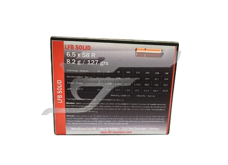 6,5x58 R LFB Solid 8,2g 127 grs golyós lőszer