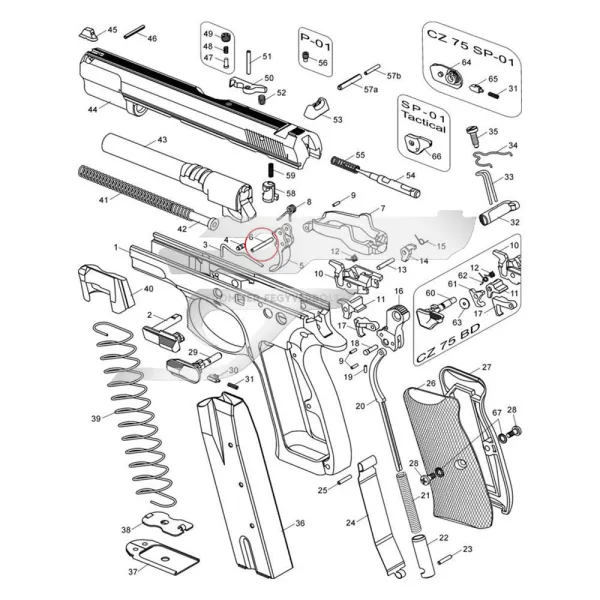 CZ 75, CZ 75 SP-01 (without firing pin block models), CZ 75 Shadow Line, CZ 75 SP-01 Shadow, CZ 75 SP-01 Shadow Orange, CZ Shadow 2, CZ Shadow 2 Orange, CZ 75 Tactical Sports, CZ 75 Tactical Sports Orange